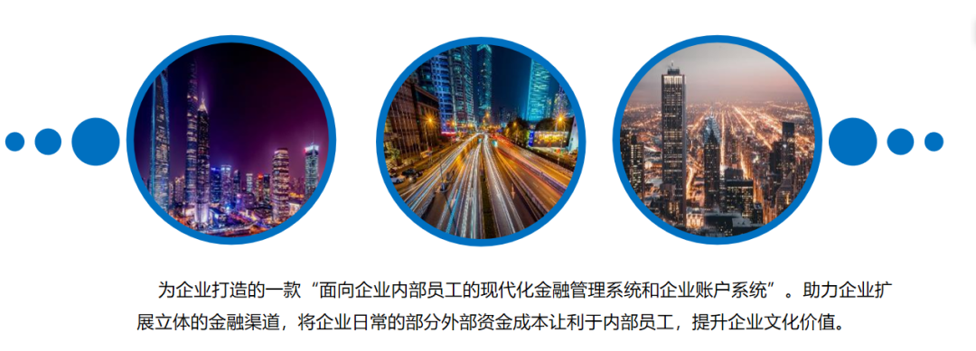 为企业打造的一款“面向企业内部员工的现代化金融管理系统和企业账户系统”。助力企业扩展立体的金融渠道,将企业日常的部分外部资金成本让利于内部员工,提升企业文化价值。